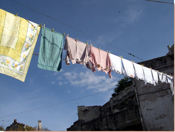 青空が見えたら、いっせいに元気よく洗濯物がはためくのです。
